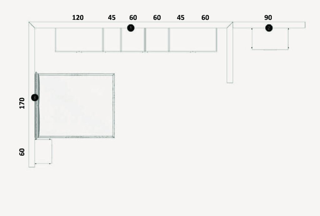 Gli armadi a battente si combinano perfettamente con piani d’appoggio, offrendo una soluzione ideale per ottimizzare lo spazio con stile e funzionalità. Questa composizione è studiata per integrare al meglio il design contemporaneo con la praticità quotidiana, creando un ambiente raffinato e armonioso.